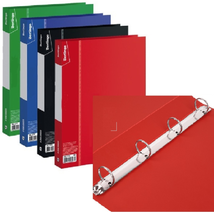 Թղթապանակ 4 օղակով՝ 25մմ, 700 մկ, ամուր կազմ Berlingo Standart։